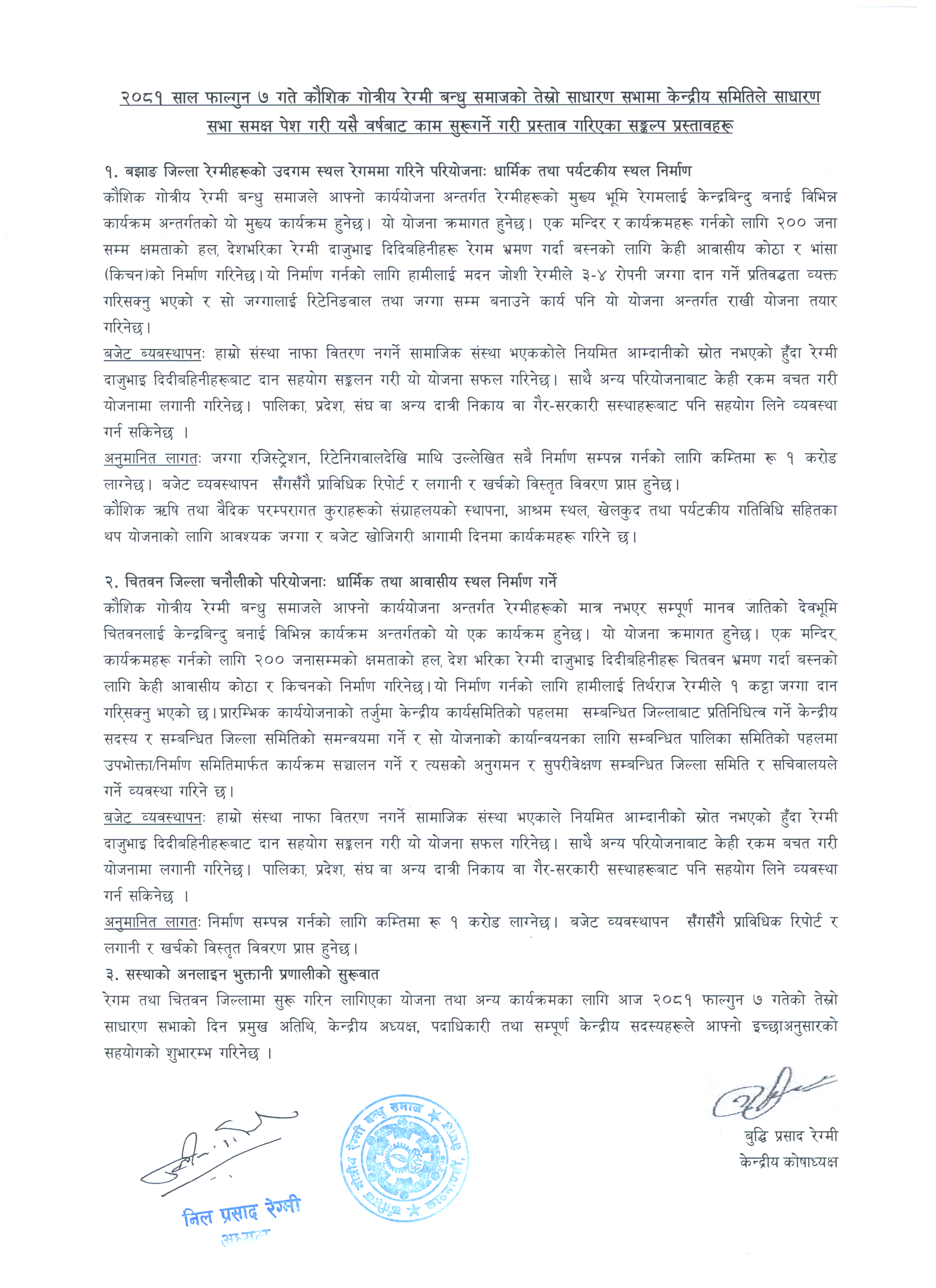 पौष २७ मा सम्पन्न दोश्रो बार्षिक साधारण सभाको स्वीकृत बार्षिक कार्यक्रम र समाज प्रति